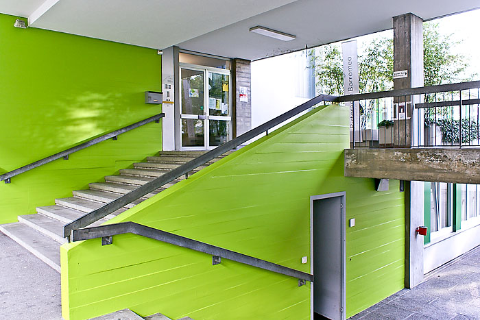 Beim Schulhaus Hochwald setzten wir, in enger Zusammenarbeit mit den verschiedenen Behörden und dem Denkmalschutz, modernste natürliche Produkte auf der Basis vom Minergie Standard ein. Im Innenbereich schuf man für die Benutzer, durch eine freundliche Farbgebung, eine harmonische und wohltuende Atmosphäre. Es wurden bestehende alte Elemente mit Neuem verbunden.